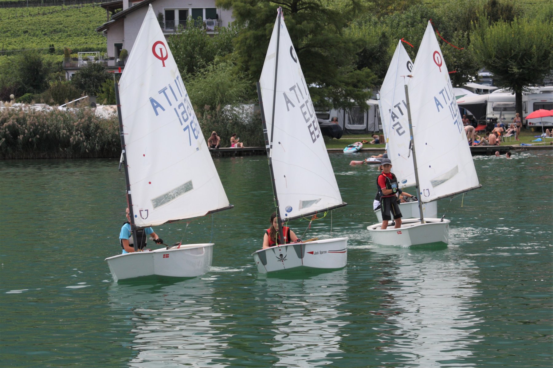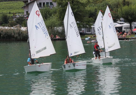 La flotta Optimist del lago di Caldaro