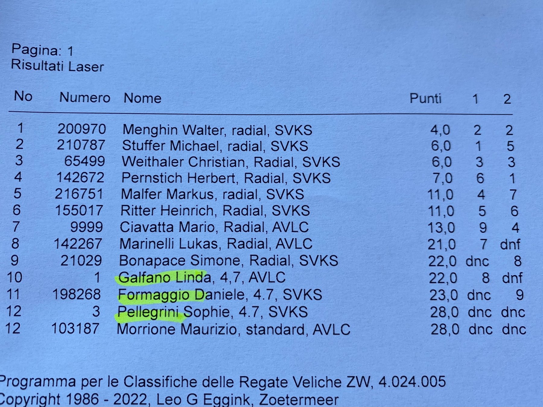 Queste le classfiche: