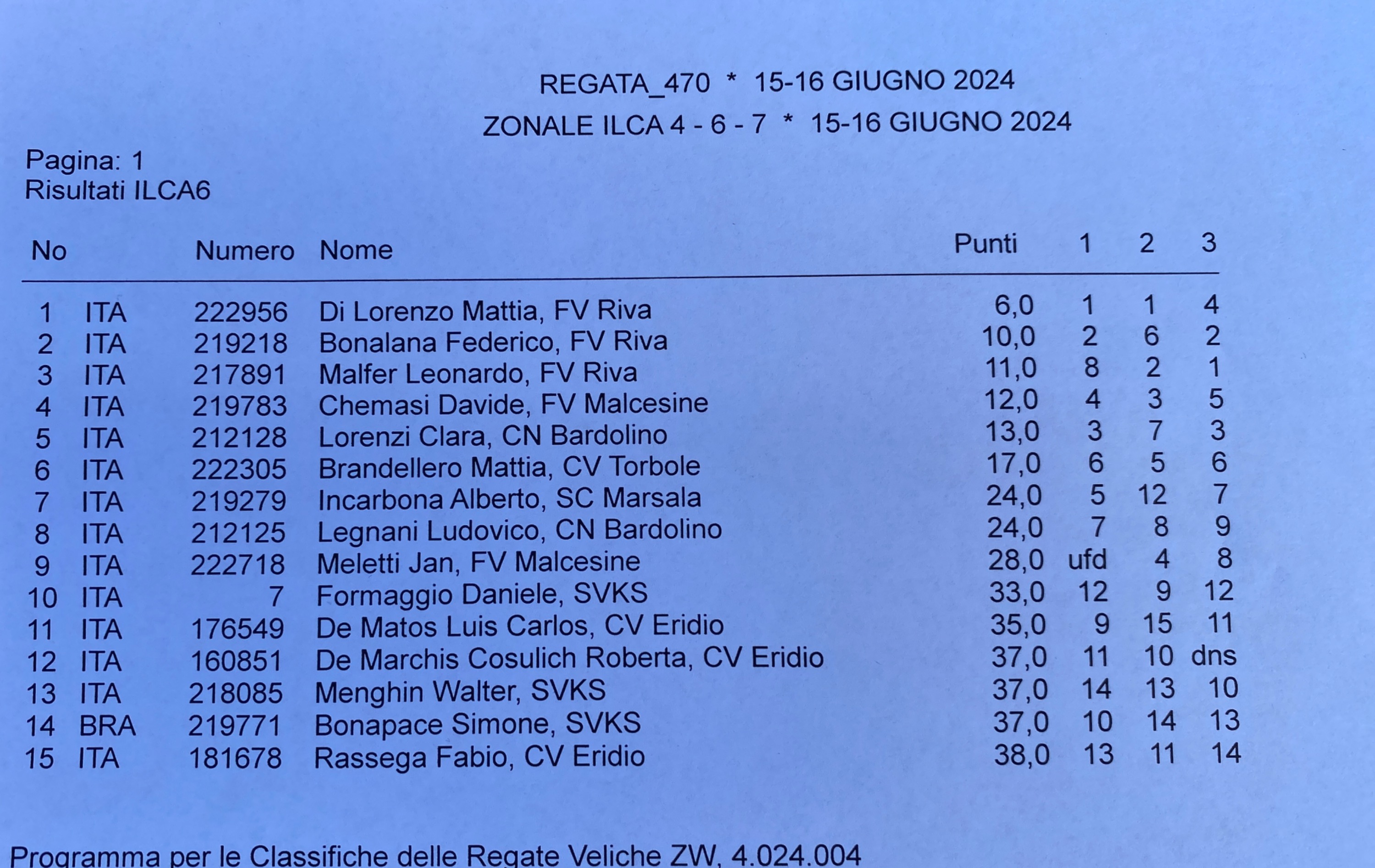 Dal 15.06. al 16.06.2024 si sono svolte la Regata Zonale per la classe Laser (ILCA) e la Regata per la classe 470.